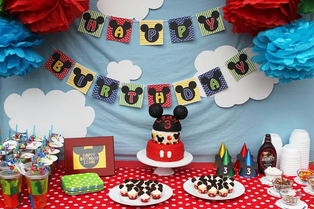- Happy Birthday Pennants: The letters have polka dots, lines, and Mickey heads as background. They are definitely so Mickey.